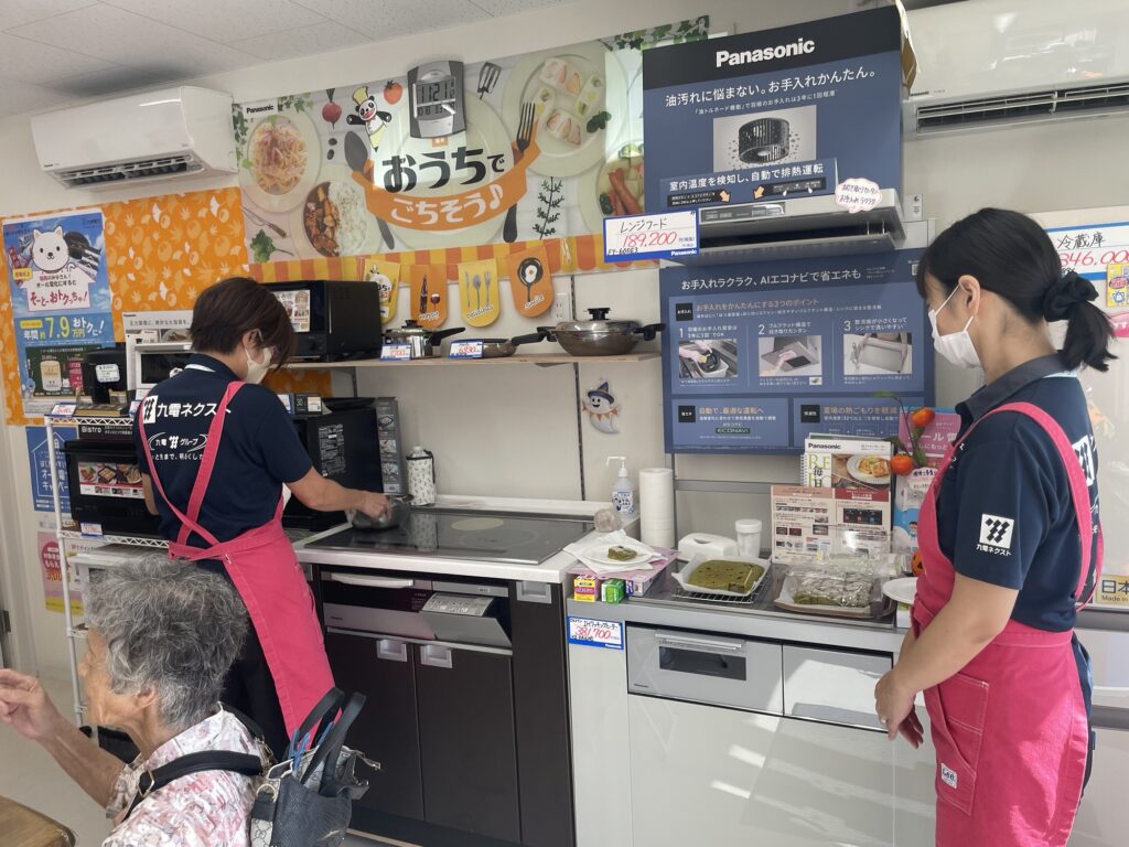 こんにちは。今日は、店内イベント1日目。 今回の記念品のひざ掛けは、2色あったので、 ガチャポンマシーン初登場。お客様に回してもらって楽しんで頂きました。たくさんの方にご来店頂きありがとうございました。 九電ネクストの方にも来ていただき、魚焼きグリルで抹茶ケーキを作って頂きました。 NEWS一覧