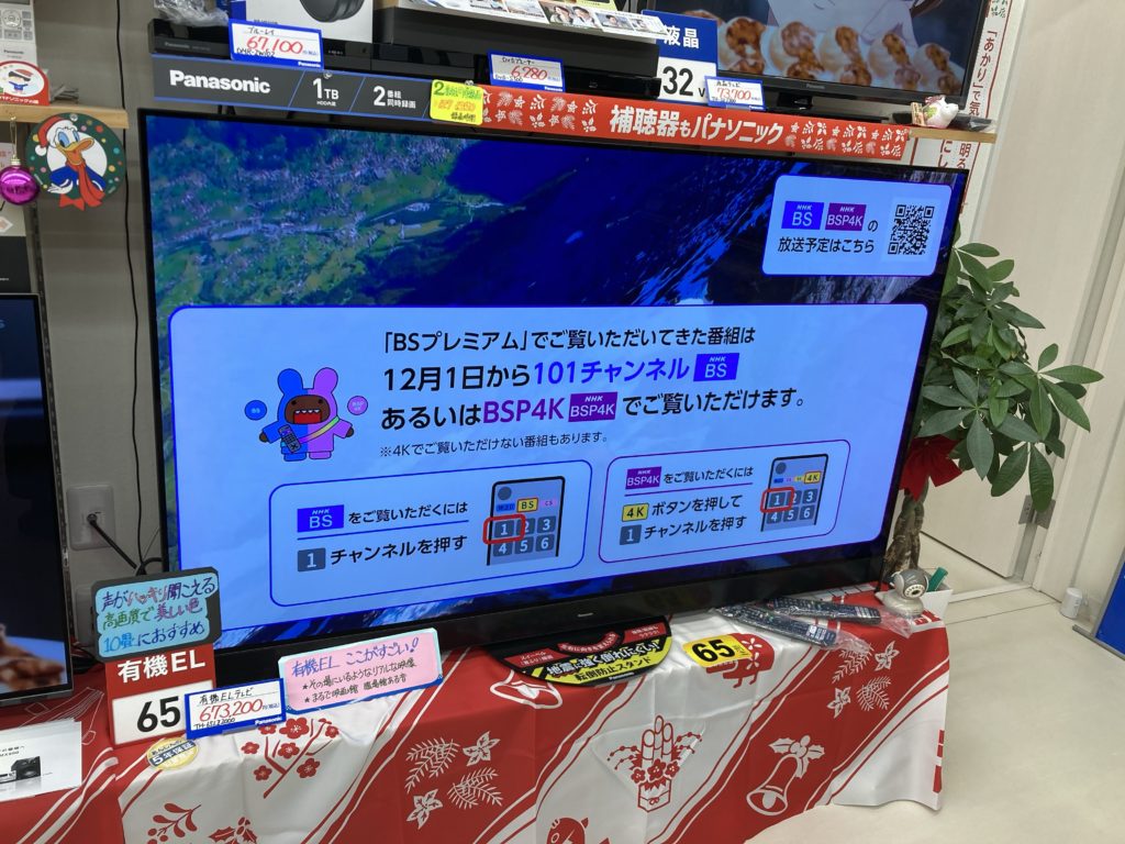こんにちは。今年最後のイベント 12月15日(金)16日(土) の2日間、店内でお客さま感謝デー開催します。 ご来店お待ちしています。 NHKのBSの3チャンネルがなくなったようで、 問い合わせがよくあります。 戻るボタン押すか、1チャンネル選んでください。 NEWS一覧