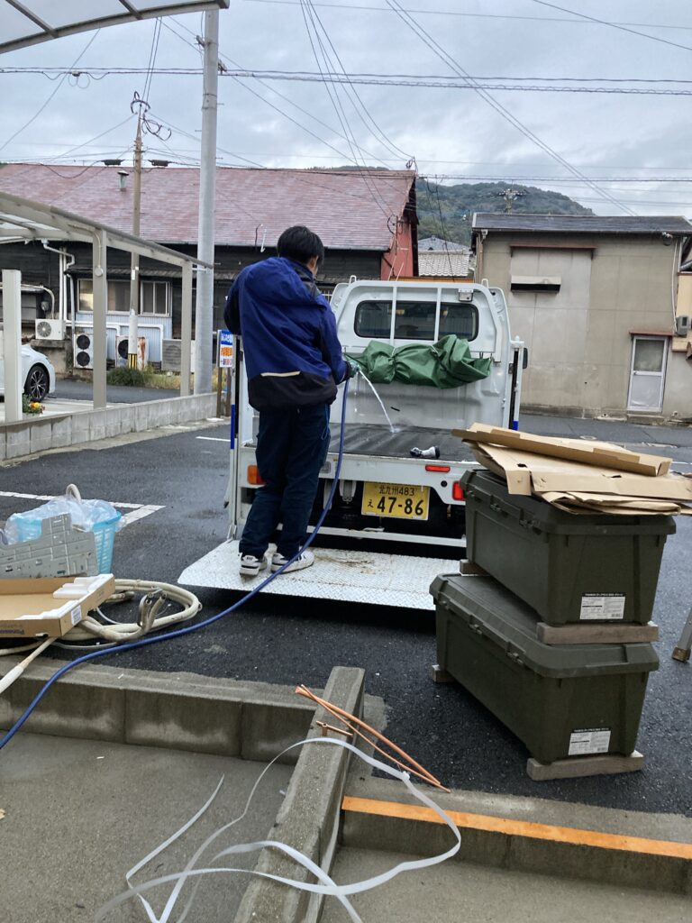 無事に工事が終わり、軽トラックの後片付けです。お買い上げありがとうございました。