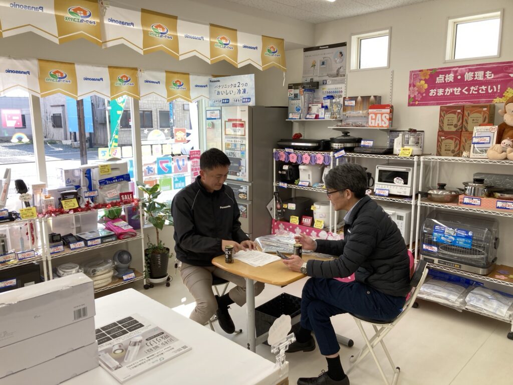 こんにちは。今日は、パナソニックの担当営業の方と社長がミーティングです。 店内のドラム洗濯機が展示処分品でお買い上げ頂いたので、新しく商品が入荷したので展示しました。只今キャンペーン中で洗濯機がお買い得です。 NEWS一覧