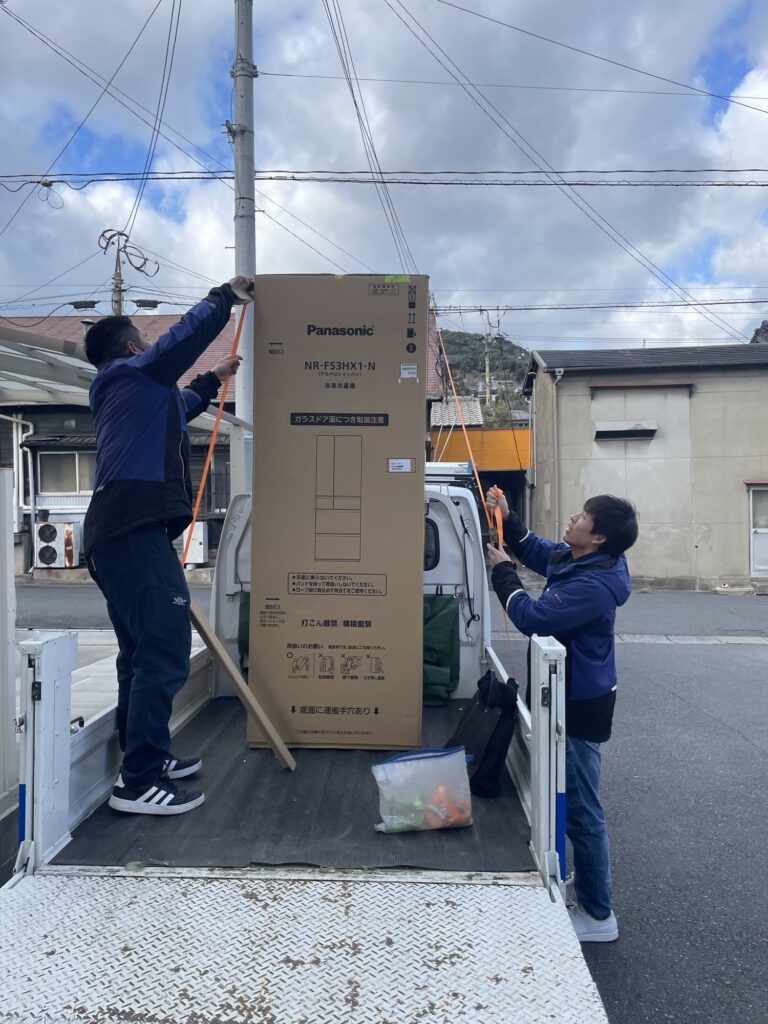 こんにちは。今日は、冷蔵庫の納品にお伺いしました。お買い上げありがとうございました。
