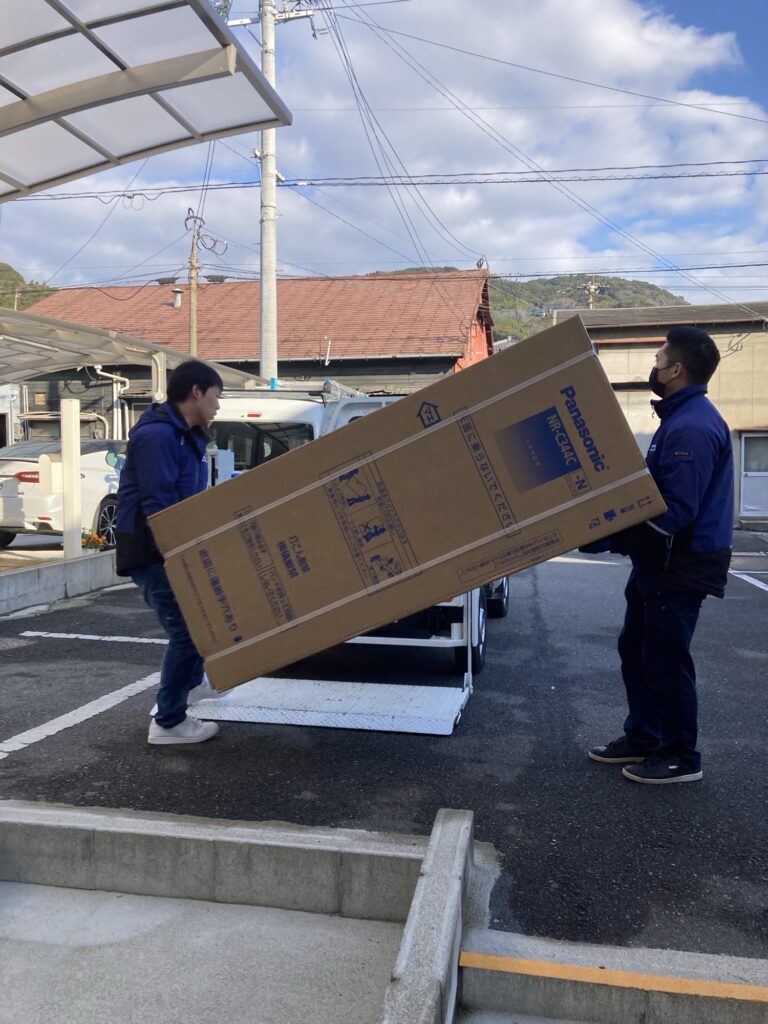 こんにちは。今日は冷蔵庫の納品にお伺いしました。お買い上げありがとうございました。