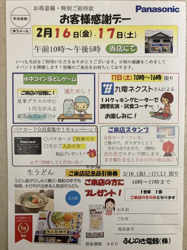 こんにちは。2月のイベントは、2/16(金) 2/17(土)の2日間で開催します。