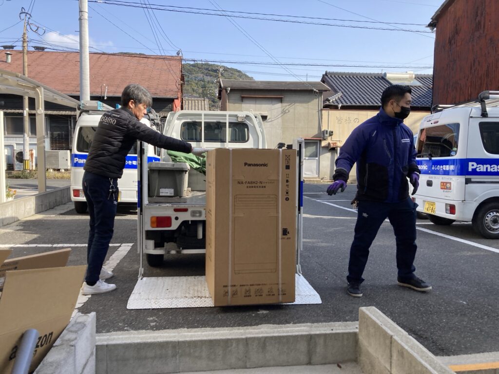 こんにちは。今日は、洗濯機の納品にお伺いしました。3月まで洗濯機下取りキャンペーン中です。ぜひこの機会によろしくお願い致します。
