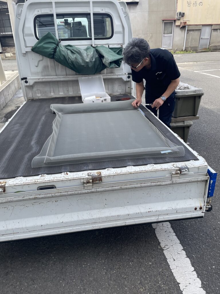 こんにちは。今日は、網戸の張替のご依頼でした。破れた網戸は、おまかせください。