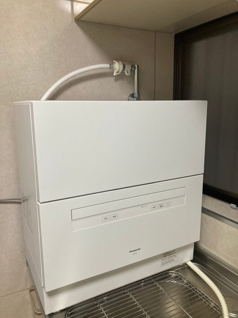 パナソニック の食洗機の買い替えで、取付にお伺いしました。蛇口の部分もスッキリなるように