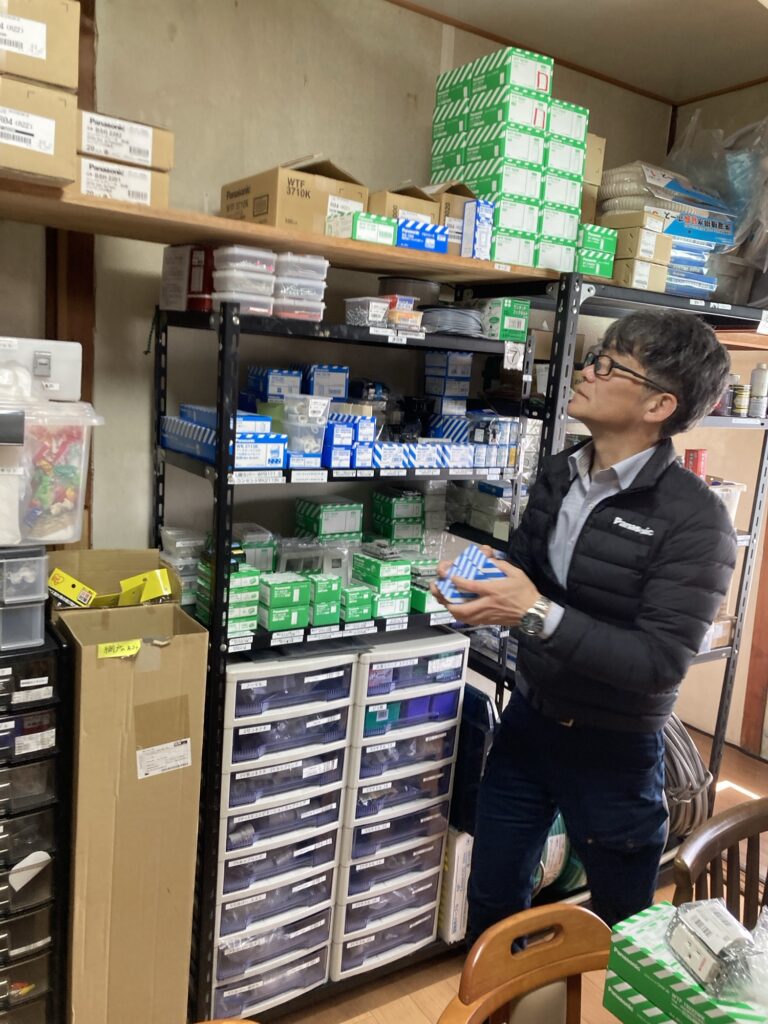 こんにちは。4月より工事部材なども値上がりしています。社長が在庫管理をしています。