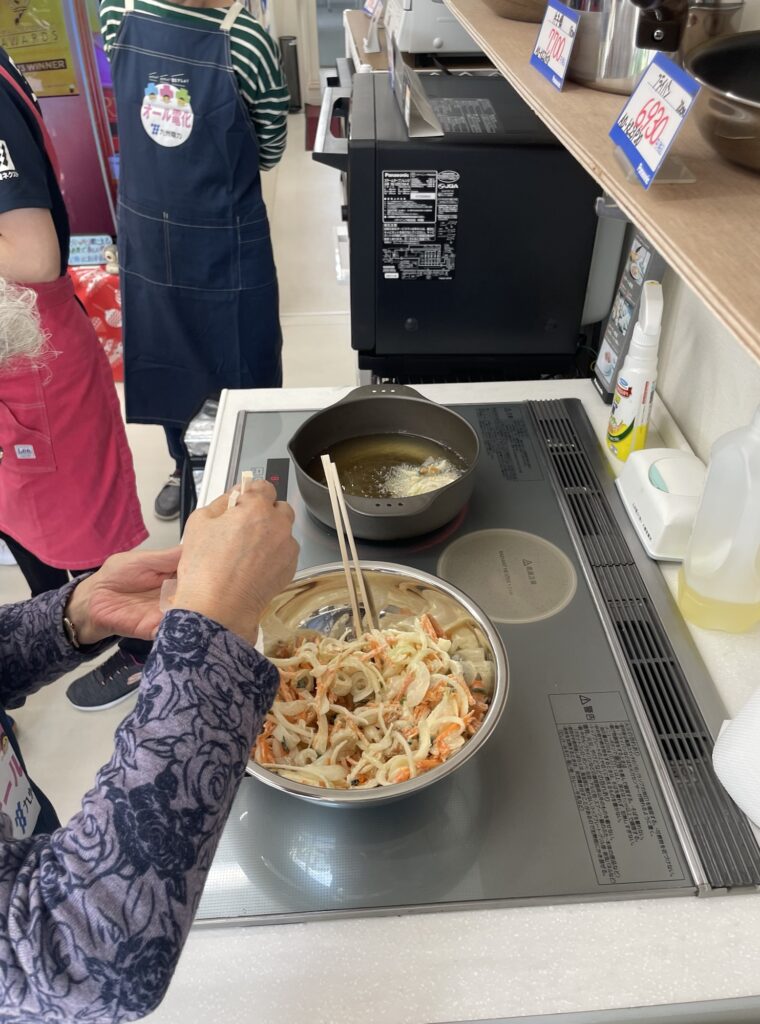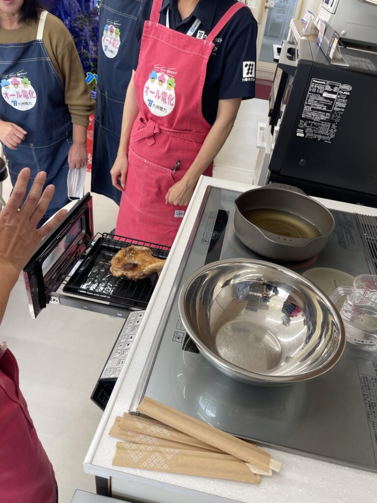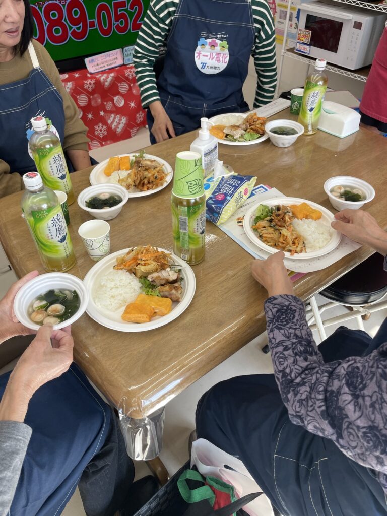 こんにちは。今日は、九電ネクストさんに来て頂き、店内でIHクッキングヒータを使って料理教室を行いました。 玉子焼き、鶏肉のグリル焼き、野菜のかき揚げ、すまし汁と、みんなで調理しました。 完成後、ランチプレートにしてみんなで頂きました。 IHクッキングヒーターで、火がなく安全、温度調節が自動で簡単に調理ができました。 参加者の皆さんとても喜んでいただきました。 NEWS一覧