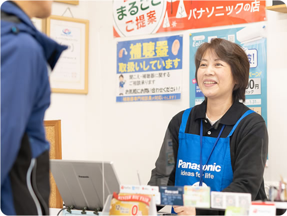 ネット販売や大型店には、商品価格では負けてしまいますが、まちの電器店だからこそできる、きめ細やかなサービスを大切にしています。
